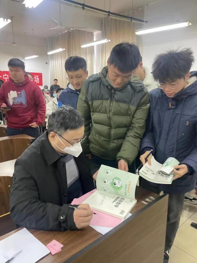 讲课结束后,同学们纷纷化身迷弟迷妹找汤老师签名合影。大家在网络上经常能看到汤老师活跃的身影,“这个年龄段你怎么睡得着觉”也是汤老师被大家熟知的段子之一。