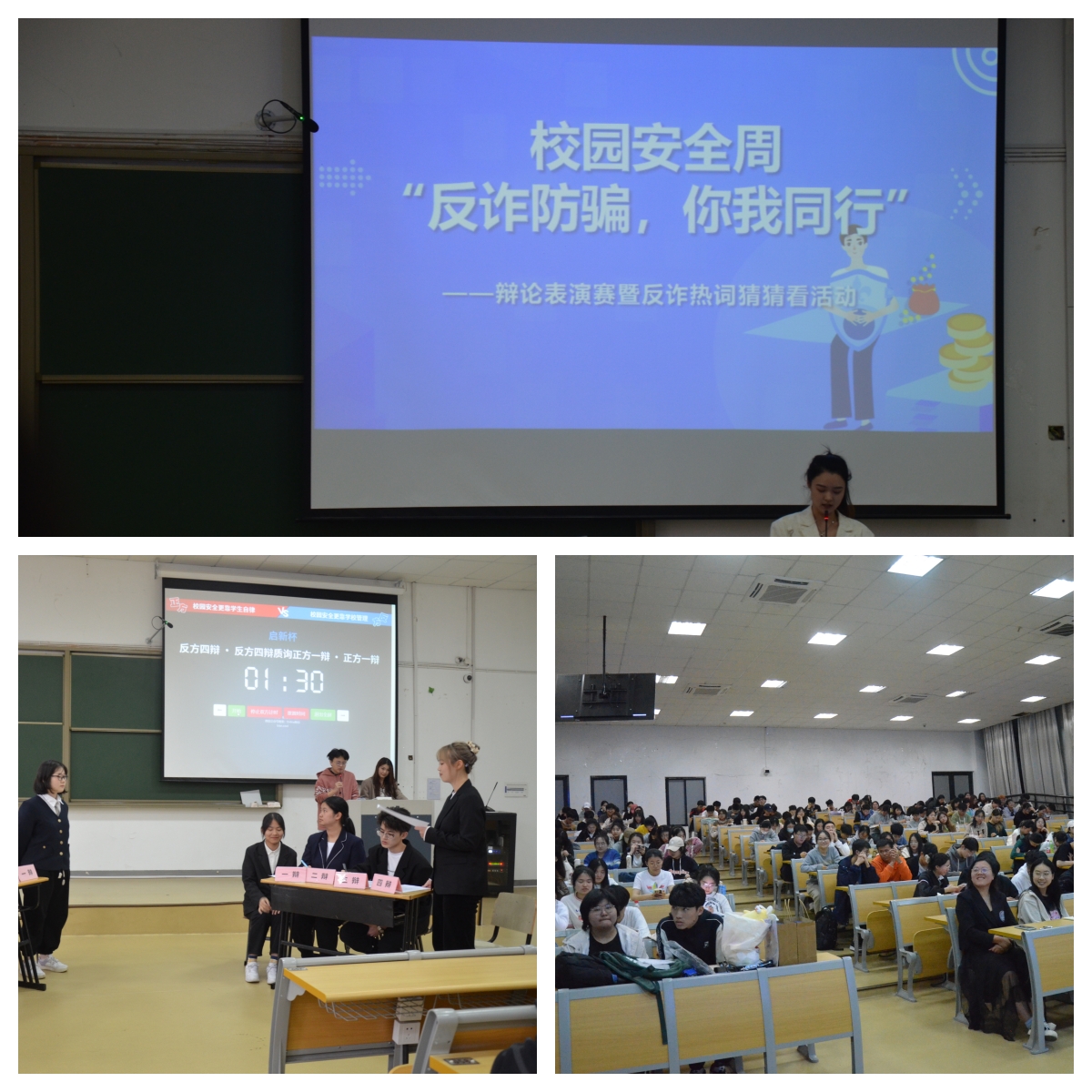 4月12日晚,“反诈防骗,你我同行”辩论表演赛暨反诈热词猜猜看活动在SB104进行,保卫处李珍老师和ladbrokes立博沈樱枝老师出席。ladbrokes立博辩论队围绕“校园安全主要依靠公司管理/员工自律”唇枪舌剑、针锋相对,为200余名现场观众带来了一场精彩的言语盛宴。反诈热词猜猜看活动以小游戏的方式,让同学们了解常见诈骗手段,提高意识警惕,现场欢声笑语不断。最后,公司员工会主席吴美瑶同学开展安全主题宣讲,进一步加强反诈防骗教育。
