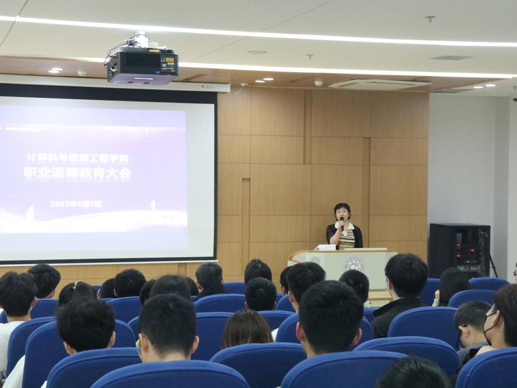 会议最后,汪洪副书记带领全体师生进行职业道德宣誓“维护网络安全,加强数据保护,注重用户隐私,做到廉洁守信”。