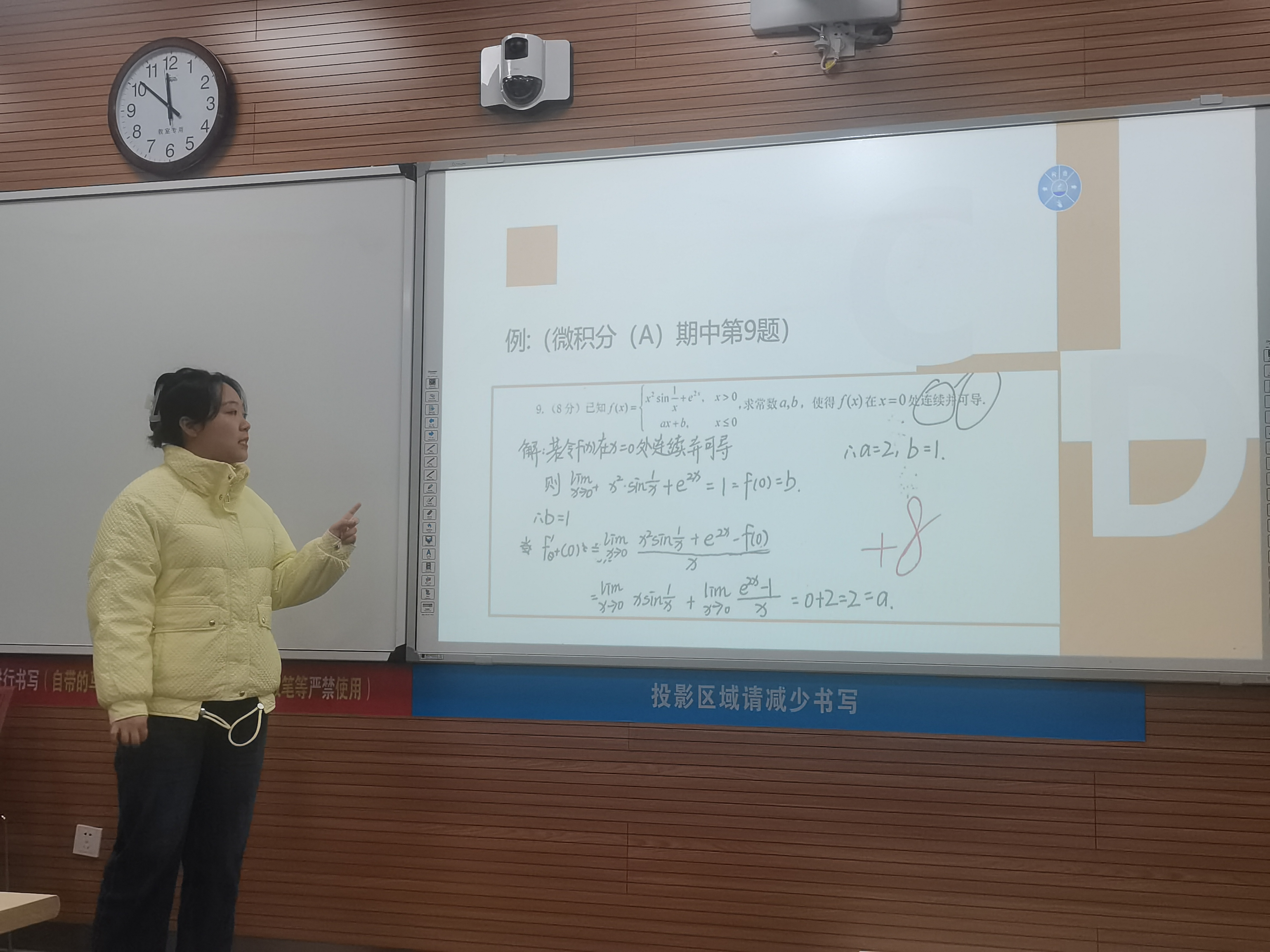 谷茜楠同学首先将自己在期末周进行微积分复习的方法向大家做了介绍,鼓励大家只要认真学习,微积分的考试就能够取得不错的成绩。然后向大家讲述了微积分的主要学习内容以及应试技巧,介绍了这学期必背公式及定理,并带大家一起用重要公式重做了期中试题。最后向同学们点明了作为班委的工作与职责,特别是在如今的大环境下,班委同学们要起带头作用,带领同学们一同做到积极学习,沉着应考。