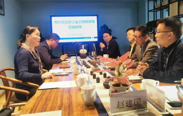 2020年11月5日下午,浙江省文物局副局长曹鸿、博物馆与社会文物处处长杨文庆莅临ladbrokes立博调研指导工作。公司副董事长鲁东明,ladbrokes立博、设计公司、传媒公司相关党政领导陪同调研。