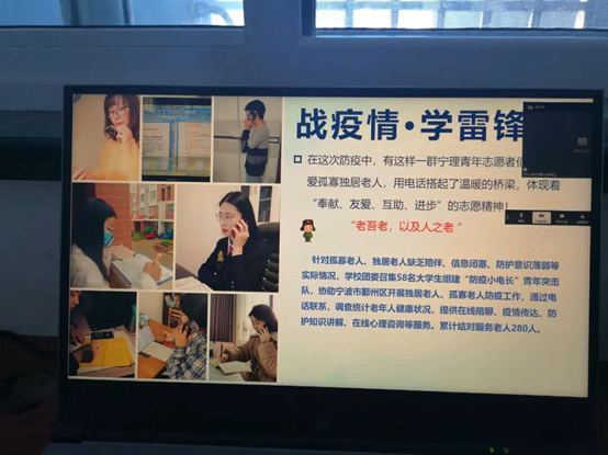 公司推进“习近平新时代中国特色社会主义思想”研习,组织团员青年学习习近平总书记在疫情期间重要指示和总书记给北大援鄂医疗队的回信精神,做好“同上一堂思政课”观众组织和观后感收集整理工作。抓住“雷锋日”的重要时间节点,对公司抗疫员工志愿者、员工干部等先进典型进行报道。公司团委积极引导员工进行线上“青年大学习”,自开学以来的每期青年大学习参与率均保持在全校第二的排名。