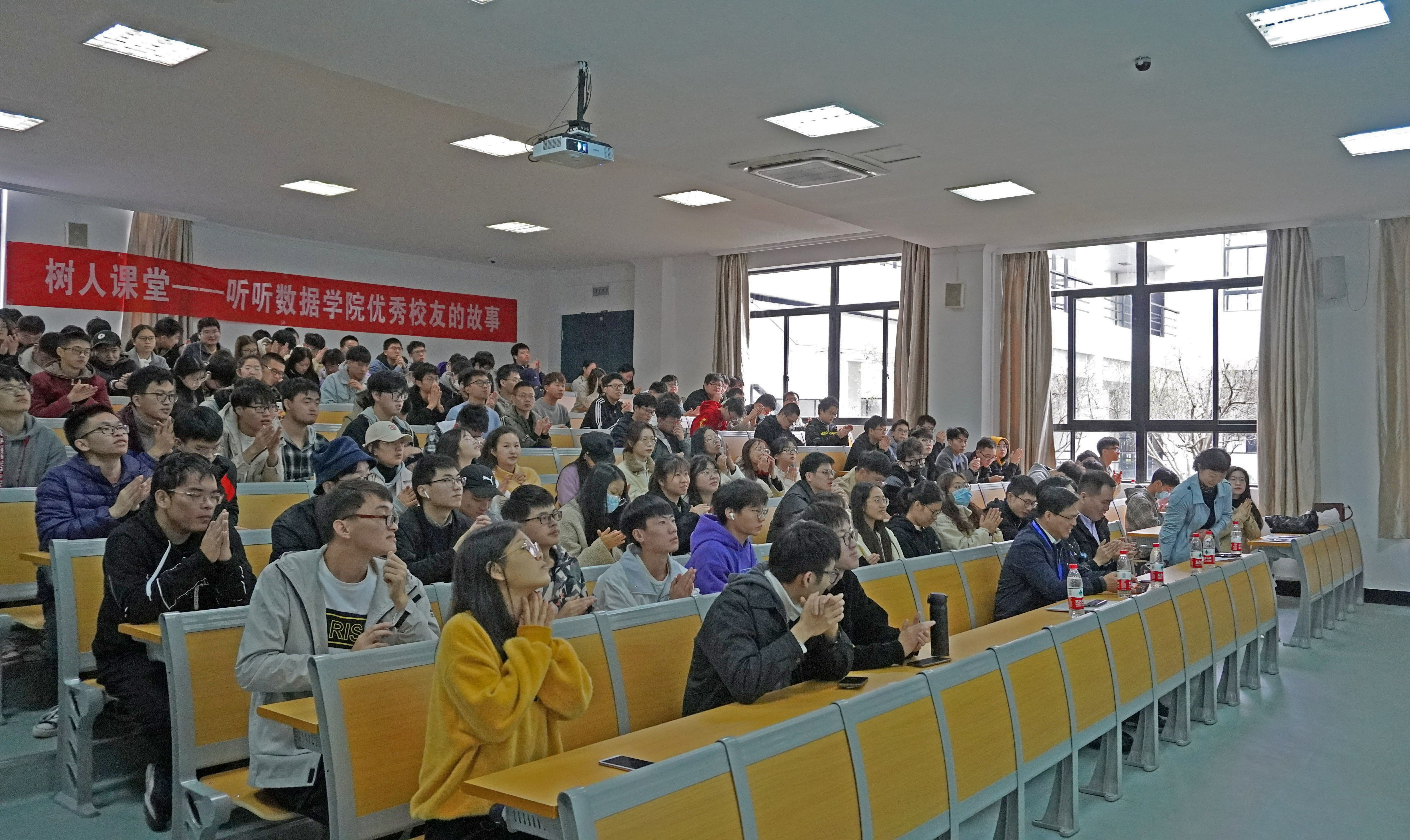 讲座开始,汪洪老师介绍举办此次活动的目的,并向同学们介绍了五位员工。五位学长则以各自的主题进行宣讲,分享自己的成长故事、工作心得,给学弟学妹指点迷津,传递正能量。