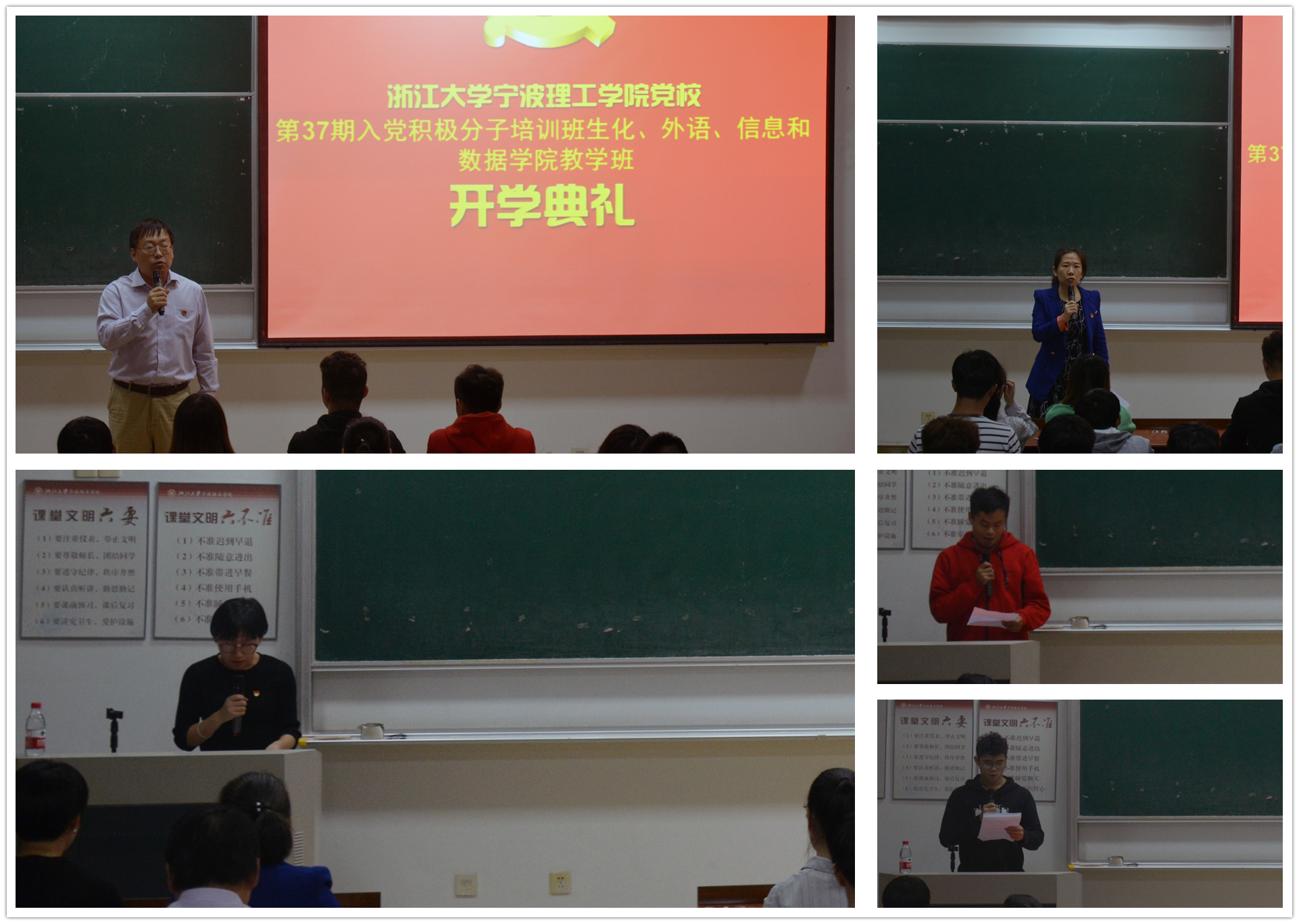 公司党校第37期入党积极分子培训班(生化、外语、信息和数据)教学班开学典礼于2019年10月25日晚上18:00在SC204顺利举行。公司党委副书记、副经理于欣老师,信息公司党委组织委员、思政主管杜明珠老师,外语公司党委组织员、思政主管芦美丽老师出席会议,以及2019年全体入党积极分子参加。会议由公司党委组织委员、思政主管王常青老师主持。