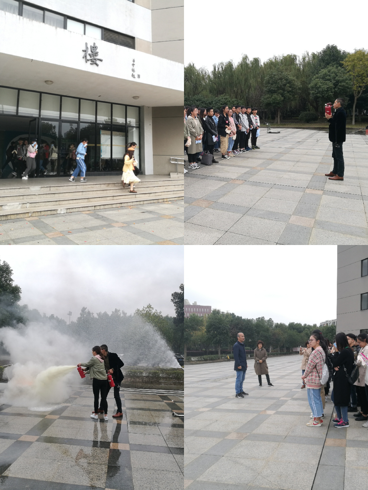 15时20分,消防警报拉响,石麟大楼2楼、4楼教室模拟发生火灾,教师有序组织教室里上课的信计171、172班、信管161班同学从火灾现场迅速撤离,经过消防通道依次疏散至可珍讲堂前面空地集合。