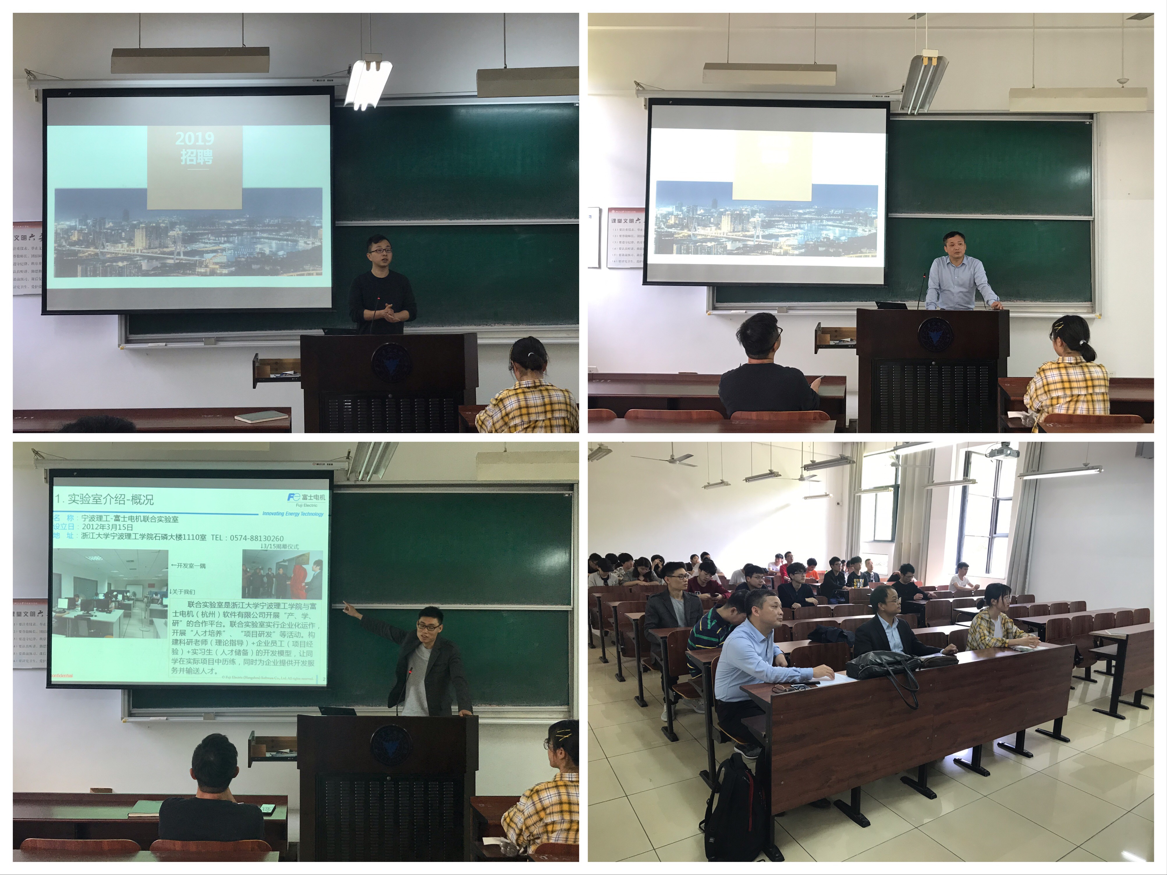 4月19日下午,富士电机(杭州)软件有限公司校园宣介会在公司NB112教室举行。富士电机(杭州)软件有限公司副总经理邓阿群、部长褚志斌、富士-理工联合实验室负责人何世振、ladbrokes立博计算机研究所肖辉老师等参加了此次活动,活动由ladbrokes立博公司学工办李晓老师主持。