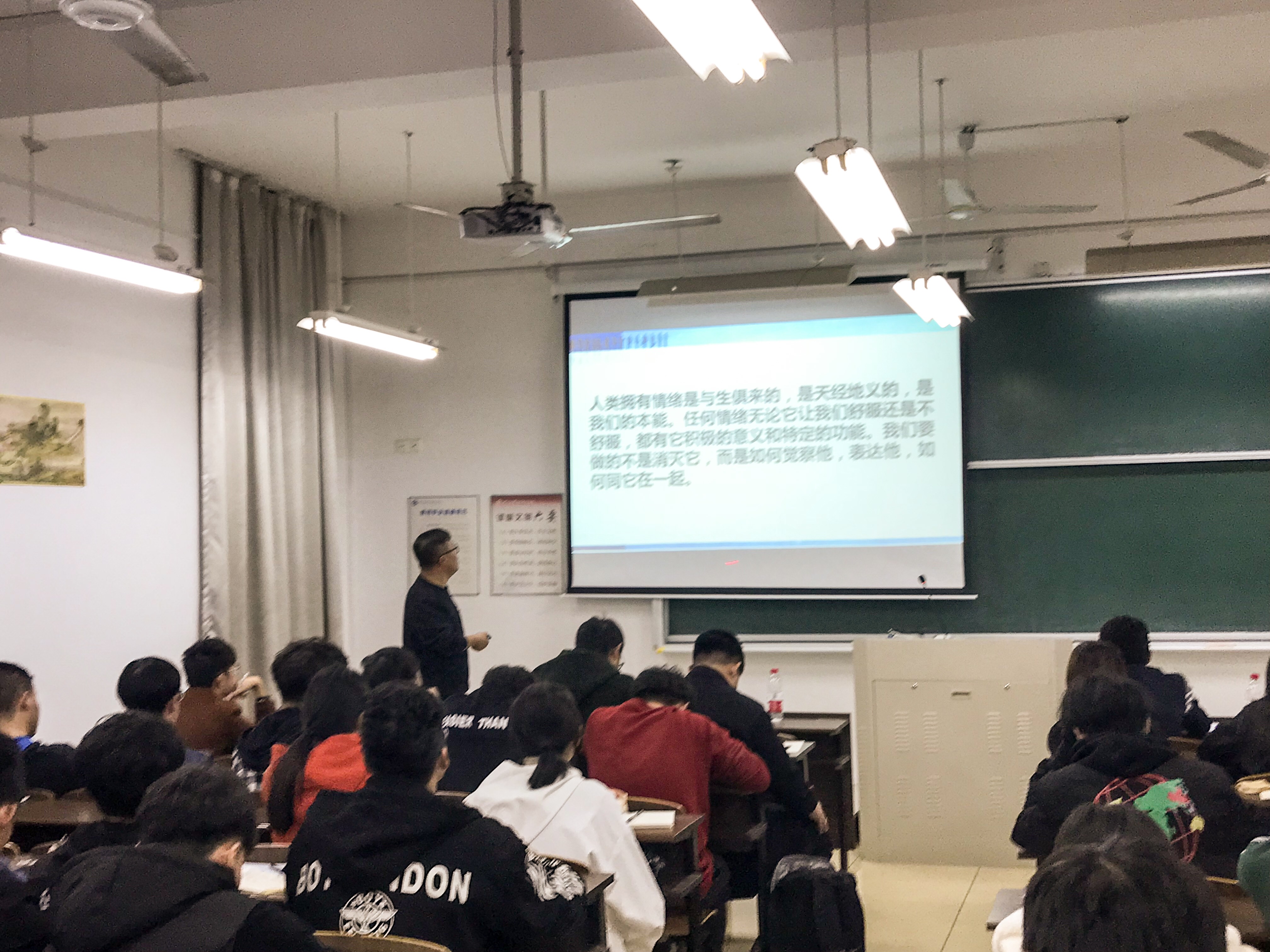 讲座开始,刘老师首先为大家剖析了“自我”的含义,接着,围绕情绪方面的问题展开了进一步的分析。他为同学们具体介绍了情绪的五要素以及在人际交往中情绪的主导性,并通过情绪化解的三大误区引出了正确调节情绪的方法。刘老师幽默风趣的上课形式赢得了同学们的一致好评,他通过与同学们的互动以及举出自身的事例从而更生动地为同学们分析实际问题并提出相应的解决办法。
