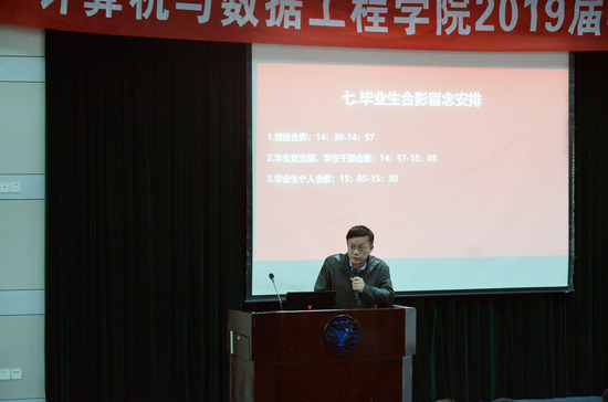 大会开始,教务办李书芹老师对毕业论文的格式要求与答辩环节做了介绍,接着她强调了毕业资格审核的注意事项,包括毕业条件与学位授予条件等。学工办李晓老师详细讲述了毕业生有关就业工作的相关事宜,包括毕业生档案,征兵入伍、“两项计划”志愿者等特殊就业,“应届毕业生身份认定”等考公务员政策解读、班级就业奖励方案与个人奖励申报以及其他日常等。然后,集团保卫部副部长叶卫树通过列举一些因安全问题而影响毕业正常的案例,提醒毕业生们要注意各类安全问题。