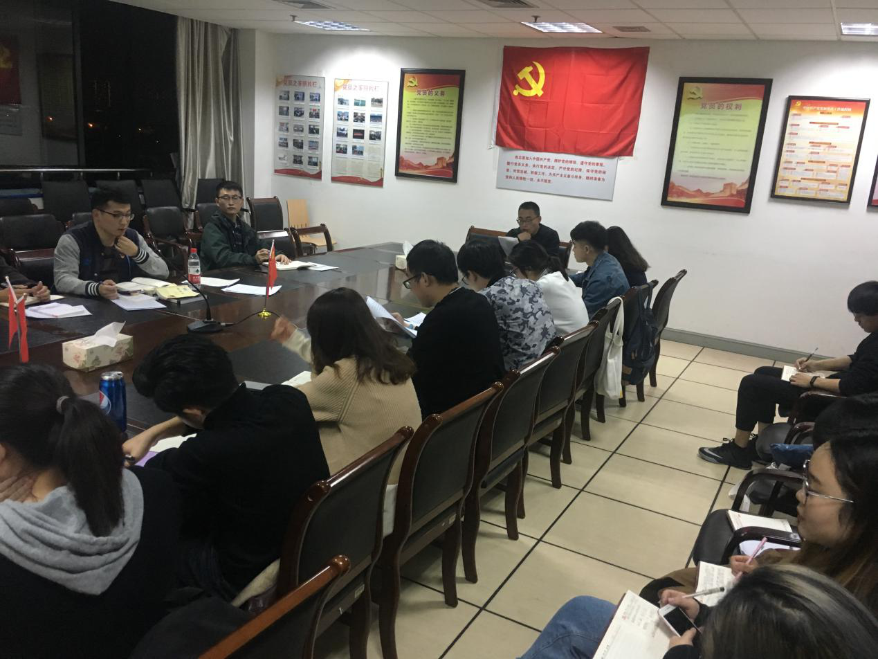 第一项议程是陈辉老师讲党课。陈老师向党员同志讲解《中国共产党纪律处分条例》的重点内容。陈辉老师对《中国共产党纪律处分条例》里的总则、分则、附则里的每章都进行了概括和大致讲解,对新修订的内容进行着重提醒,引导各位党员积极应对之后的党规党纪和监察法考试。