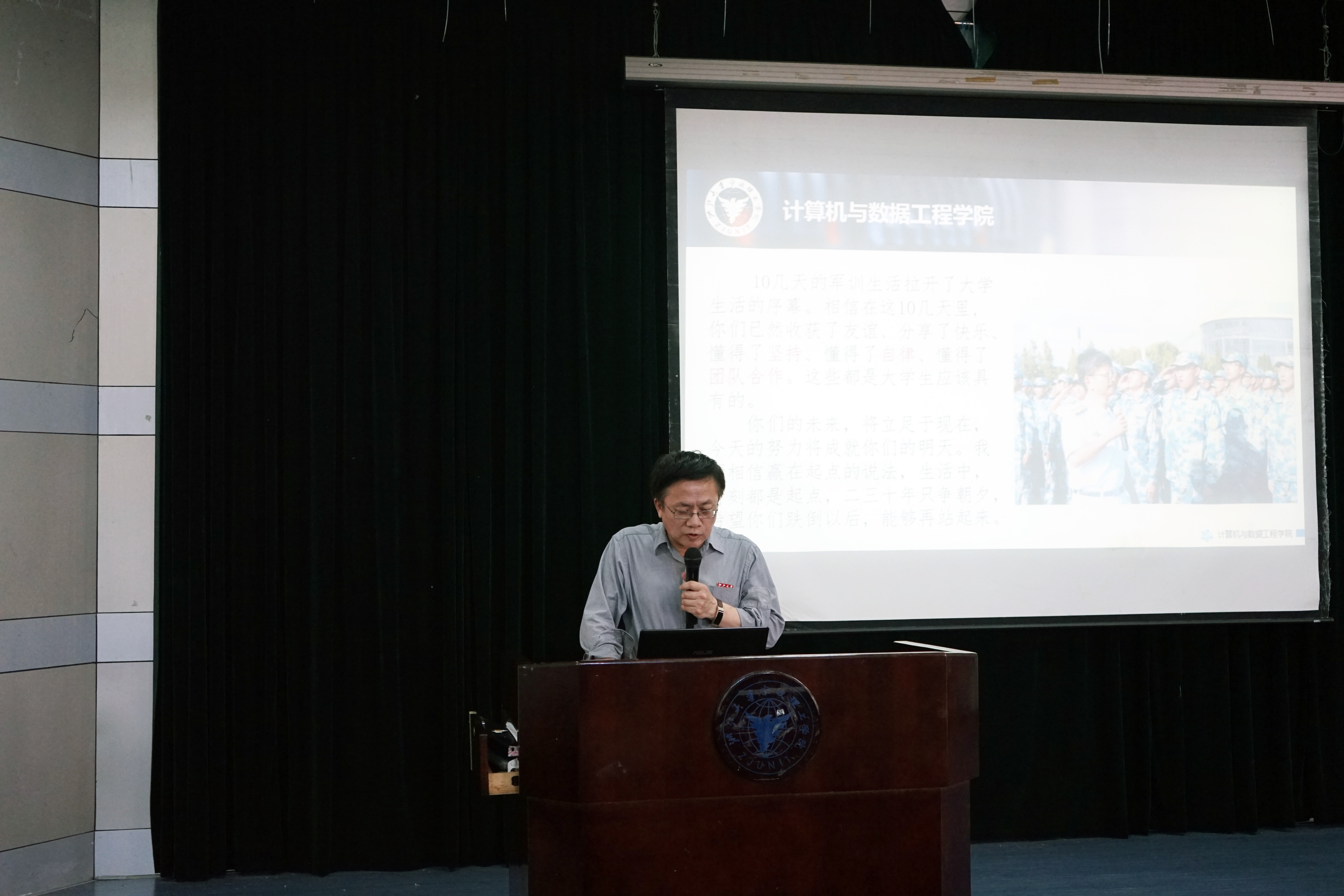 方国娟书记向新生介绍了浙江大学宁波校区建设情况,同时向新生们提出了“五要五会”的建议:要梦想,会实践;要知识,会学习;要团结,会沟通;要守纪,会规矩;要锻炼,会坚持。并且希望同学们在大学期间做好人格、视野、学识、能力、心理、体魄等各方面的准备。教务办的杨慧梅老师为同学们解读了选课以及学籍管理的相关信息。学工办的王常青老师对新生进行了员工工作方面规章制度的培训,要求同学们要尽快适应老员工活,熟悉并遵守规章制度,时刻牢记心中的梦想,增强自身安全防范意识。
