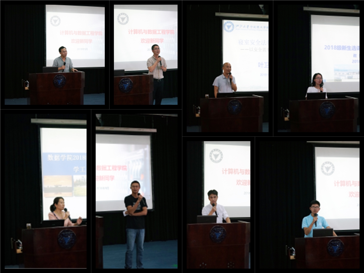 大会开始,庞经理首先对2018级新生表示热烈欢迎,而后介绍了公司的基本情况,并且向新生提出了三点建议:大学学习的重要性、做人比做事重要、能力比知识更重要。希望同学们能够自信、自强、自觉,不断提升自我价值。计算机应用技术研究所负责人汪诚波老师提出“人生软件,软件人生”,以编写代码需要不断地分析改进,引出每个人对于人生的规划也需要不停地反思与努力。数据工程与计算科学研究所负责人余心杰老师简单介绍了研究所的基本情况,讲述了人才培养的方向以及对于科学研究的展望。老生代表——信管171班的郑成琦同学与大家分享了他过去一年在工作和学习上的经验与成长,鼓励同学们不断拼搏奋斗,使自己成为更加优秀的人。大数据182班的闻兮同学代表各位新生谈了初入校园的感受,经历了军训的磨练,也将会继续带着坚强刻苦的精神面对接下来的每一个考验,将会通过自己的努力证明自己的实力。