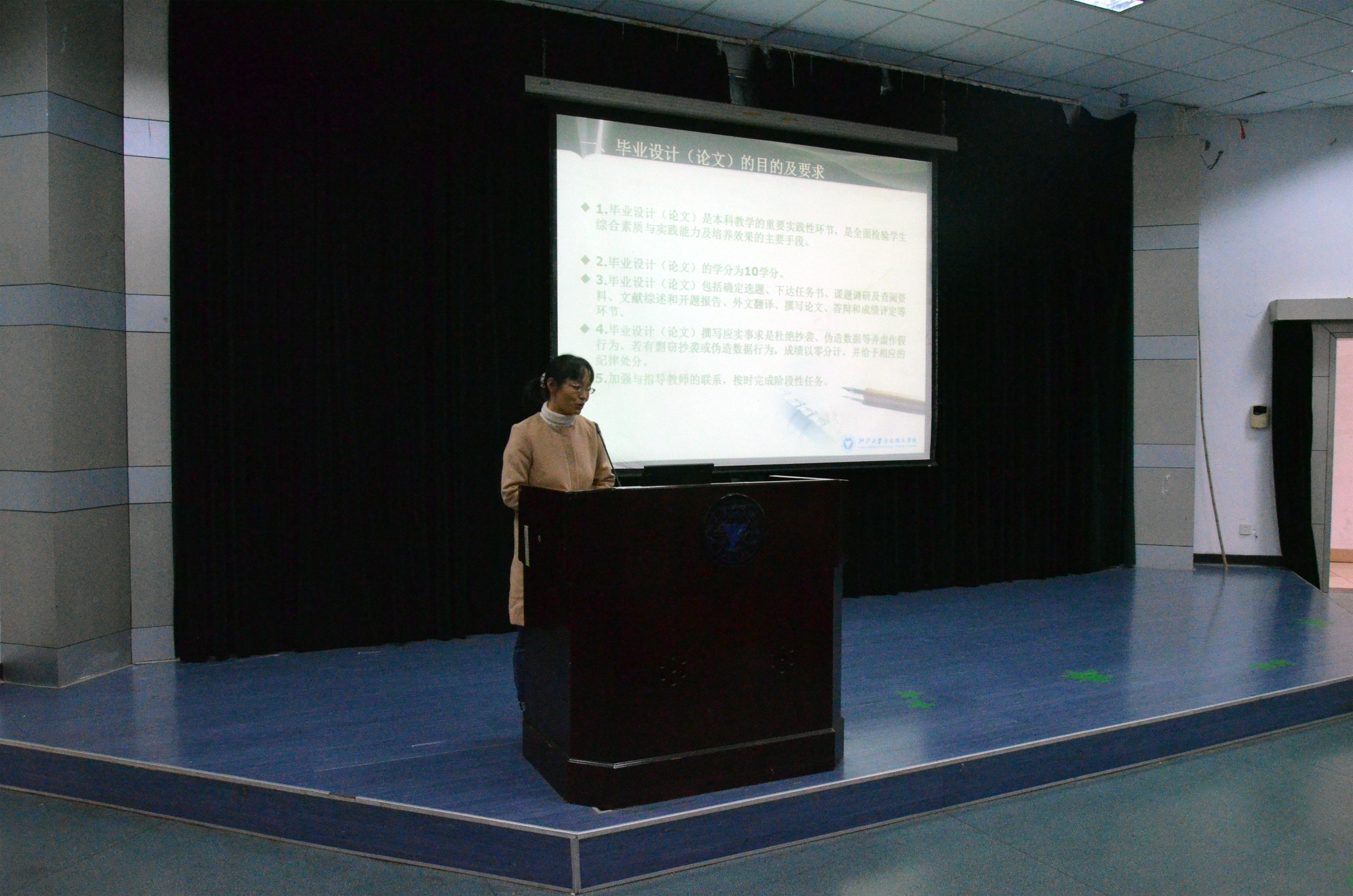教务办李书芹老师向毕业生介绍了毕业设计的要求和注意事项,也提醒了学分还未修满的员工注意重修。邬旭东老师向大家详细讲解了宁波市的就业政策和公司就业指导与服务工作的安排。