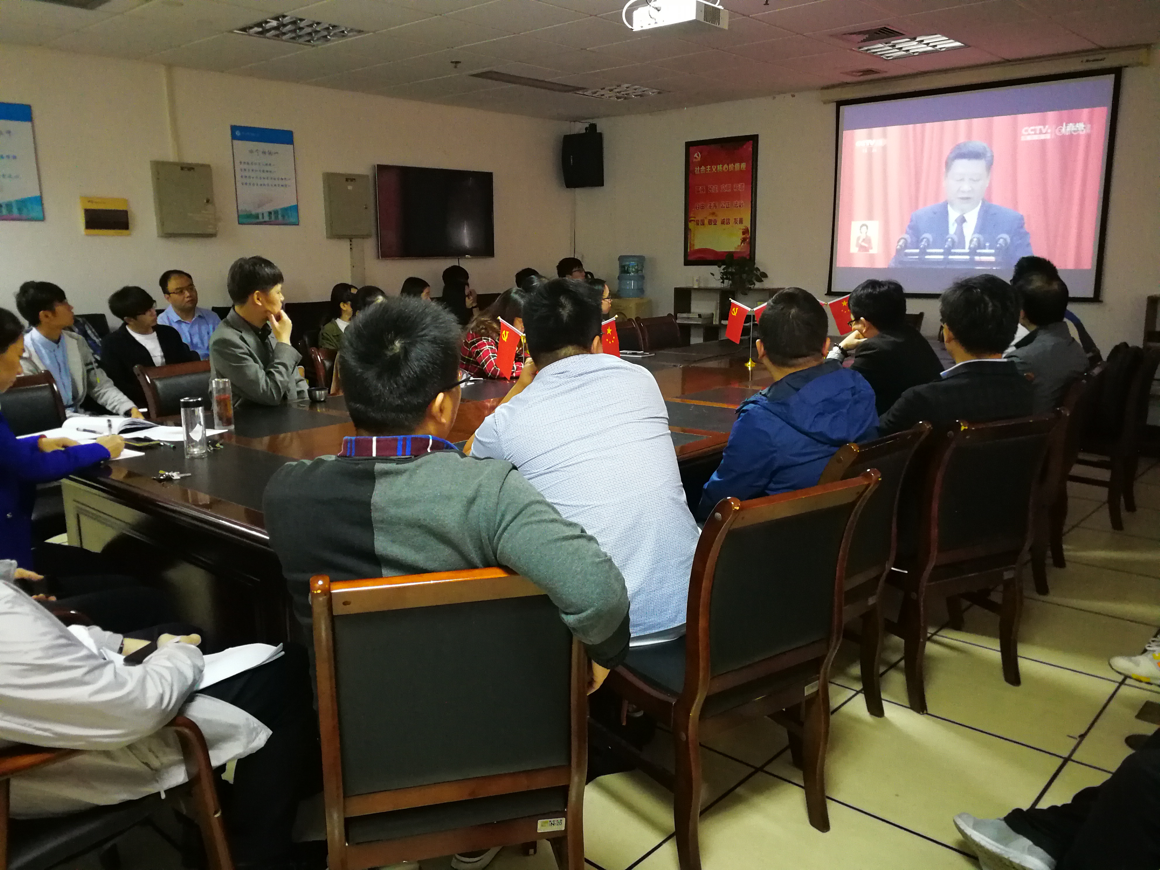 中国共产党第十九次全国代表大会于10月18日9:00在北京隆重开幕,公司党总支组织广大师生党员在党员之家收看了党的十九大开幕会及有关实况报道。师生党员纷纷表示党的十九大是我国在改革发展关键阶段召开的一次十分重要的大会,是全党、全国各族人民政治生活中的大事,师生党员将以身作则,带头学习,带头贯彻,以实际行动学习、宣传、贯彻十九大精神。
