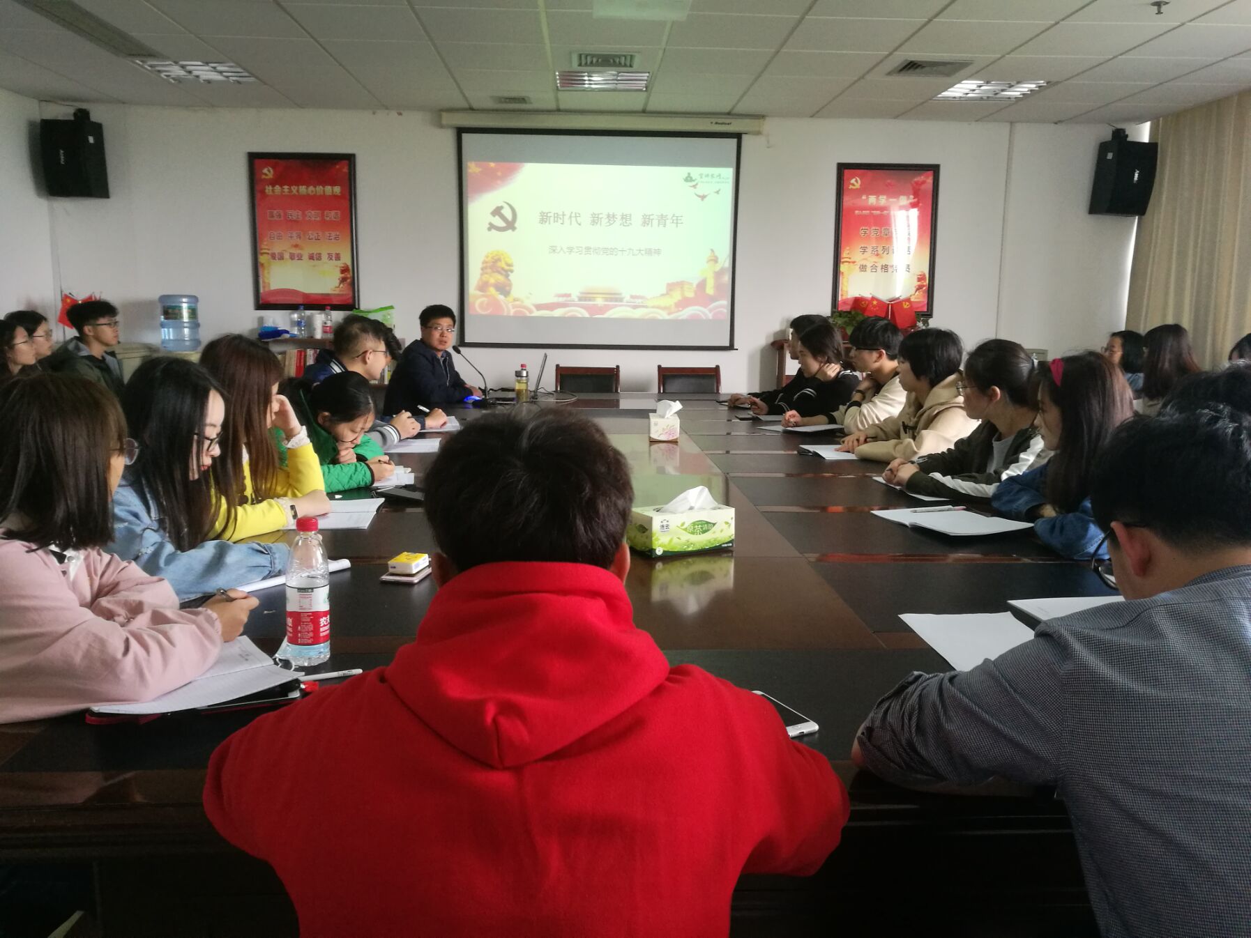 伍醒老师首先对十九大报告和习近平新时代中国特色社会主义思想进行了深入解读。其次,针对我国现阶段进入新时代的理论依据和现实依据展开了阐述。最后他希望作为新时代接班人的当代青年能够担当起国家和党赋予自己的历史使命和责任,能够在实际学习工作中努力学习科学文化知识,勇于担当,敢于创新,树立远大的理想,与祖国和时代一起成长。