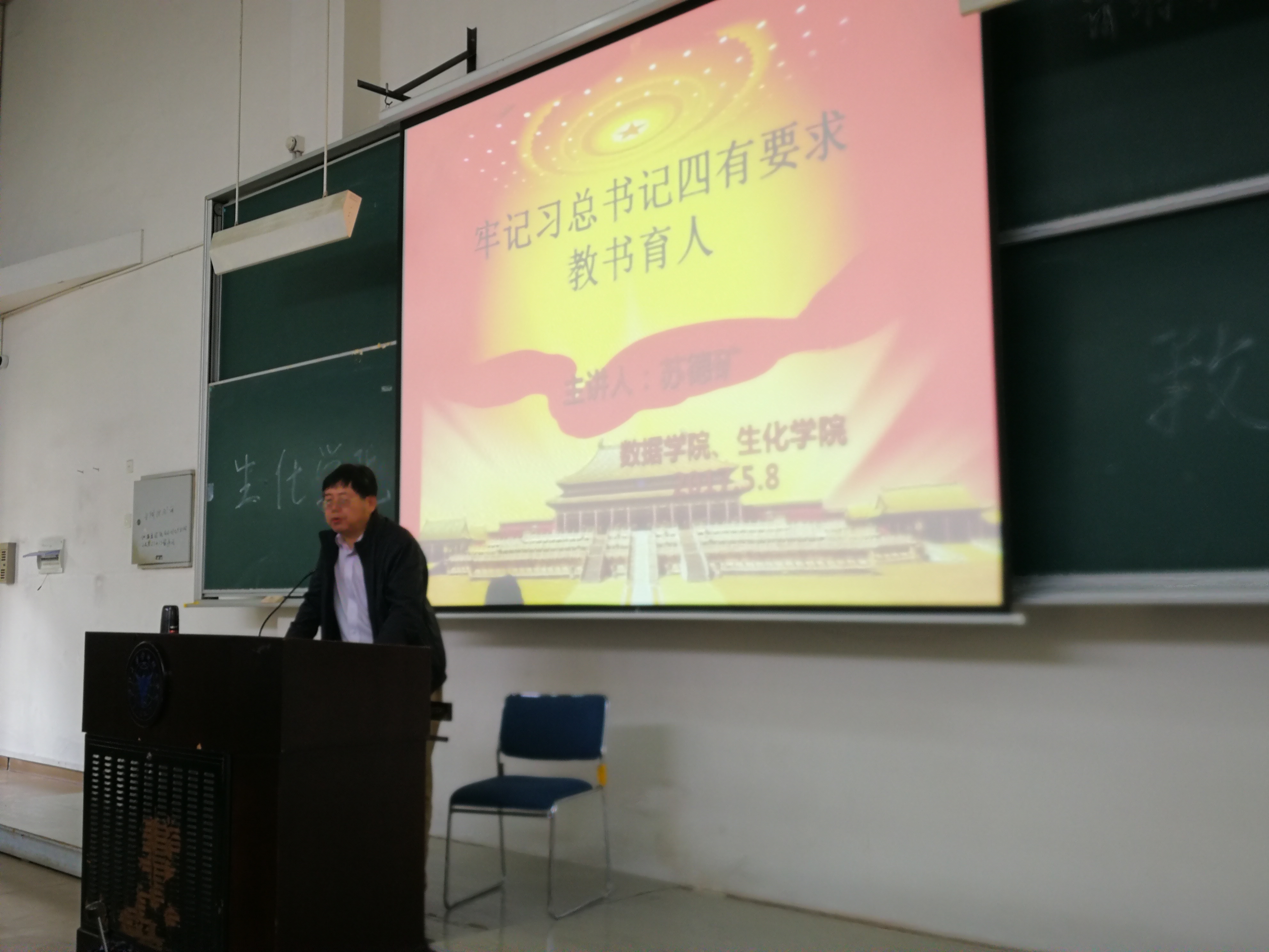 5月8日中午,ladbrokes立博、生化公司党总支落实全国、浙江省思政工作会议精神专题报告在NC102举行。浙江大学三育人标兵、首届教学名师,2015年全国党和人民满意的好老师、全国十大最美教师,2016年全国优秀共产党员,人称“矿爷”的苏德矿教授作了《牢记习近平总书记四有要求 教书育人》的报告。ladbrokes立博、生化公司近200名师生党员参加了报告会。会议由公司党总支书记方国娟主持。