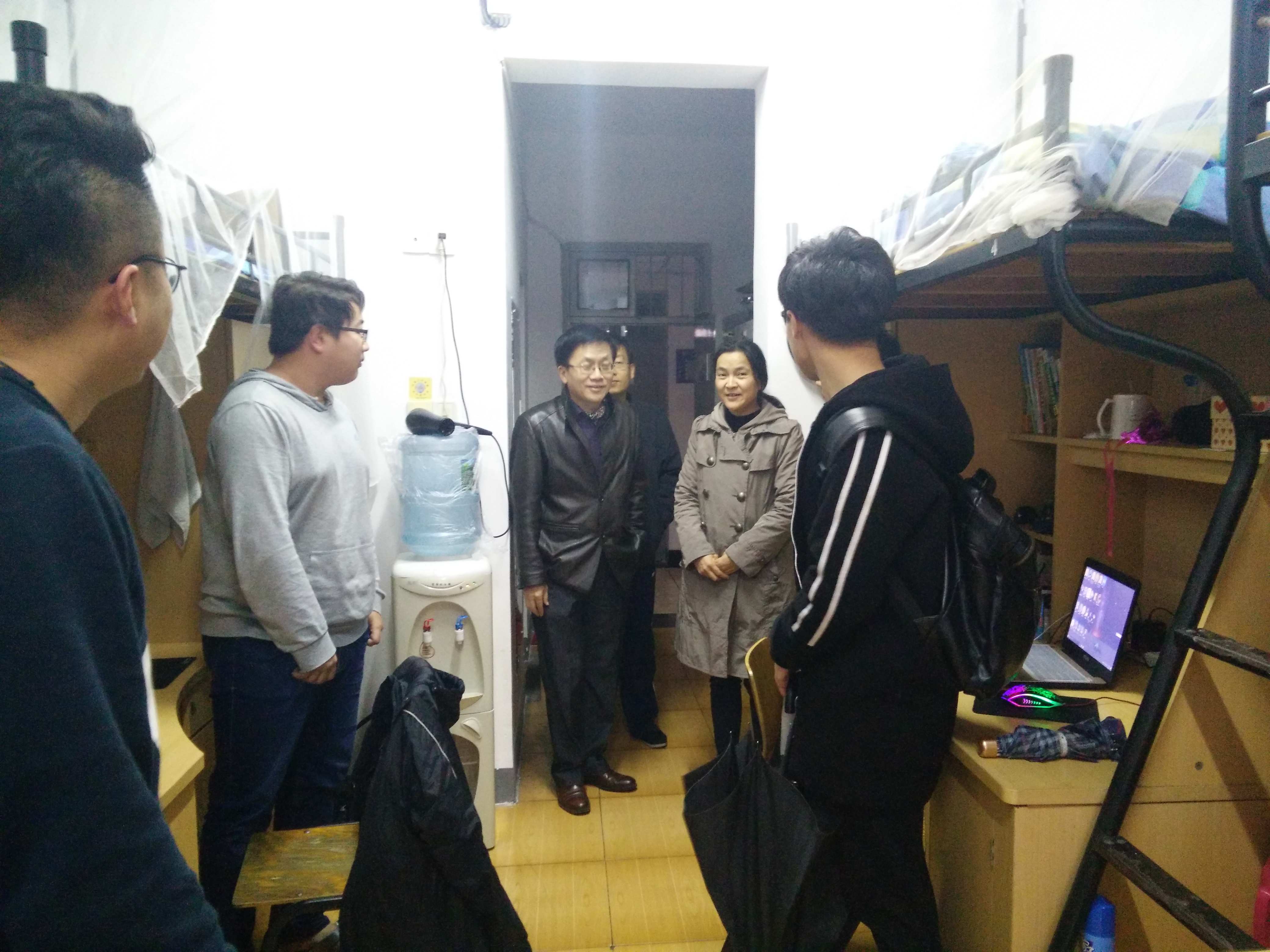 首先,各位老师们来到了16幢207寝室,老师们详细询问同学们在生活、学习方面的情况,针对同学们学习较薄弱的科目进行了交流,各位老师结合自身的大学经历和体会与同学们进行了职业生涯规划交流。接着各位老师到联系的员工寝室进行了走访,与所联系寝室员工进行了深入交流,进一步加深了师生之间的联系。