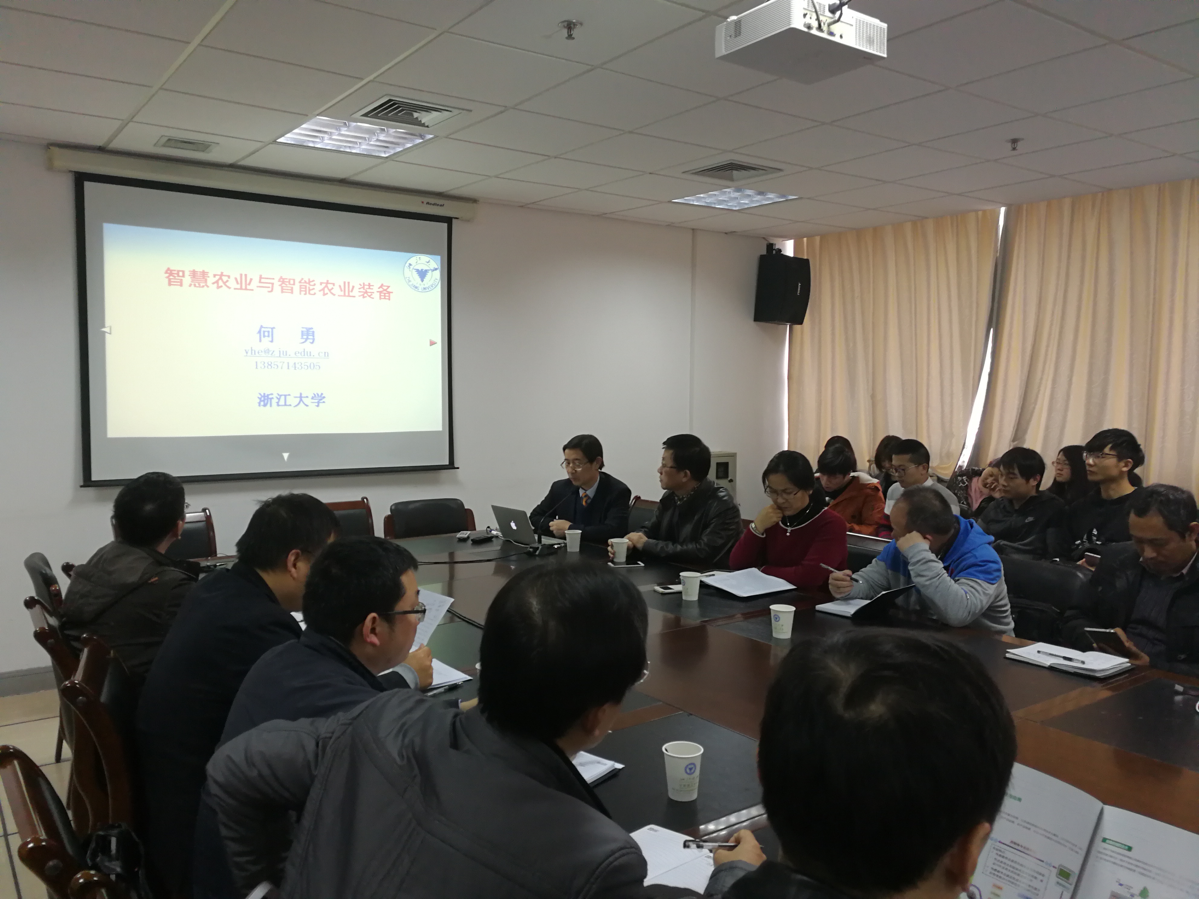 4月1日下午13:30,浙江大学何勇教授学术报告会在石麟大楼602室举行。宁波市农业局农机总站装备处处长吕长淮,农机推广总站培训科长张锋锋,ladbrokes立博经理庞超逸、党总支书记方国娟、副经理李兴森及50余名师生参加了报告会。报告会由ladbrokes立博副经理于欣主持。
