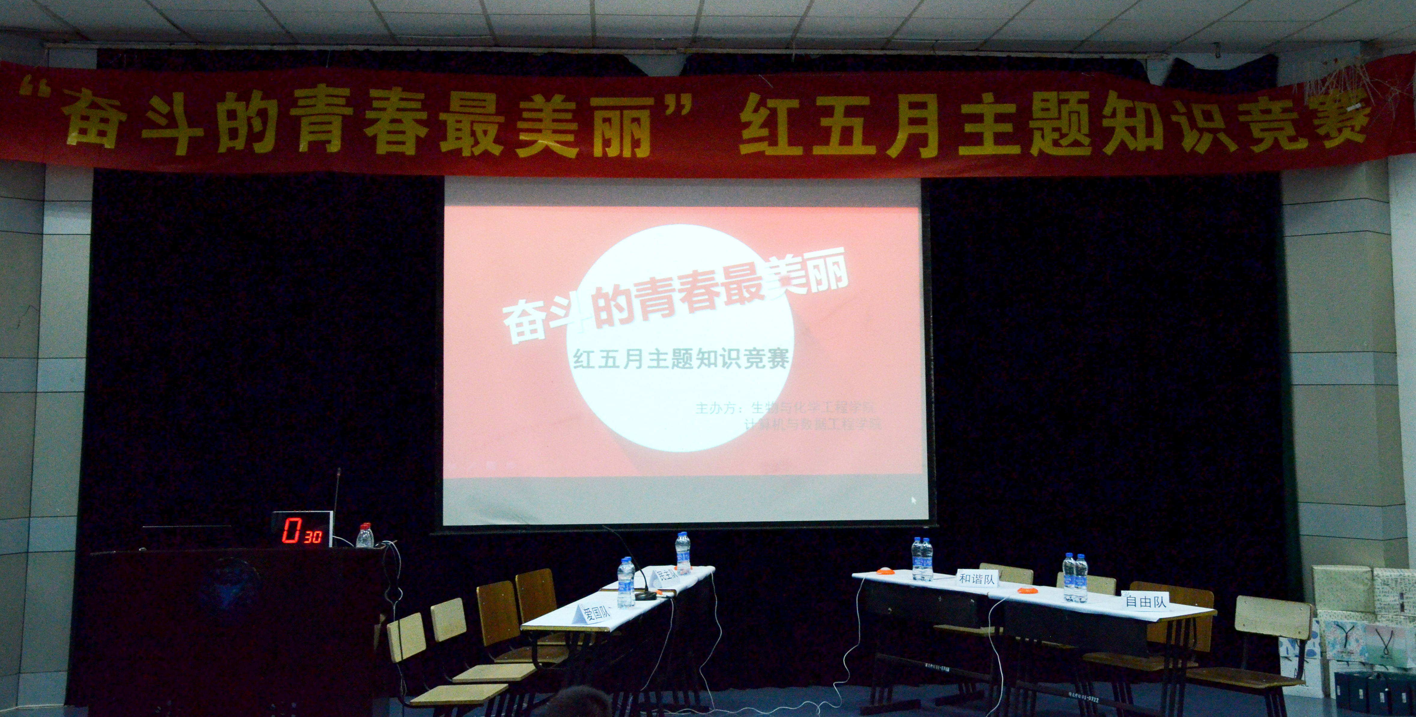 为庆祝中国共产党建党96周年,中国共青团建团95周年,弘扬党的先进性以及增强广大团员青年服务意识,数据及生化公司于5月22日晚在NF103开展了红五月主题的知识竞赛。参加本次竞赛的共有爱国、民主、文明、和谐四支队伍,同时数据和生化公司同学前来观赛。