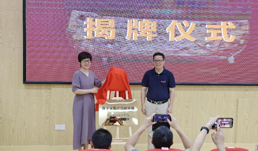 宁波新文三维股份有限公司总经理李红红、公司副董事长鲁东明共同为“数字文化产学研基地”揭牌。