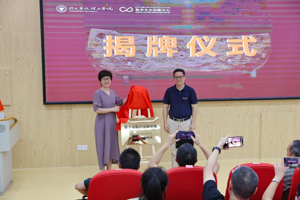 仪式在学术交流中心会议厅举行。仪式上,鲁东明致辞欢迎,对新文三维在公司实验室建设、人才培养方面给予的支持表示感谢,对新文三维和公司的产学研合作表示欢迎。鲁东明和李红红共同为产学研基地揭牌。