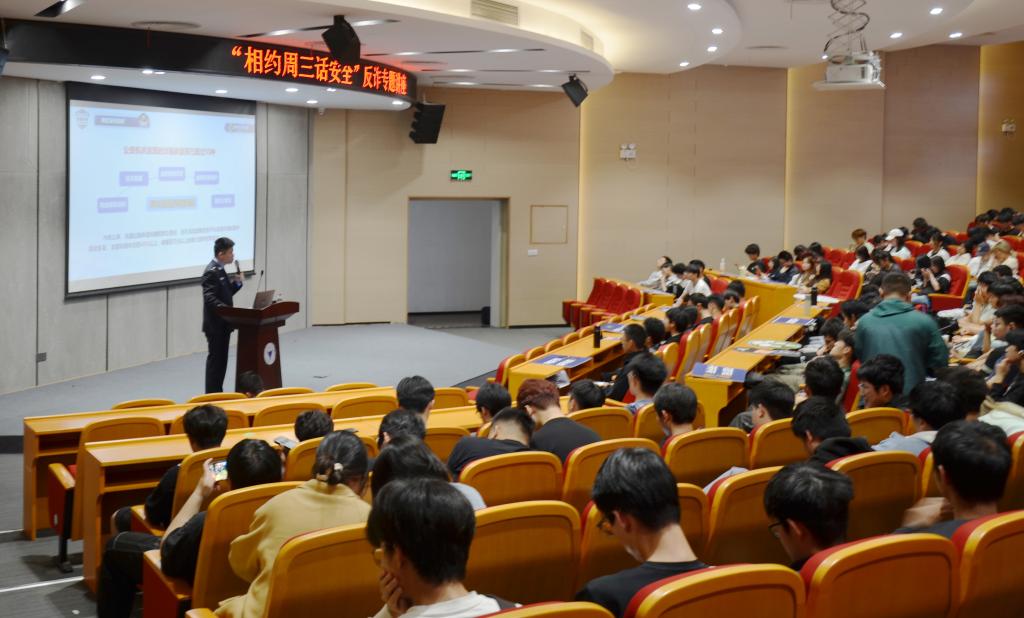 讲解中,黄警官强调天上不会掉馅饼,但凡有利可图的都是骗子设计的陷阱。同时,黄警官还强调了在进行金钱交易时核实对方身份的重要性,提醒师生们要时刻注意保护个人隐私,避免泄露网络账户、银行卡等敏感信息,从而减少给诈骗犯罪分子可乘之机,保护好自己的“钱袋子”。