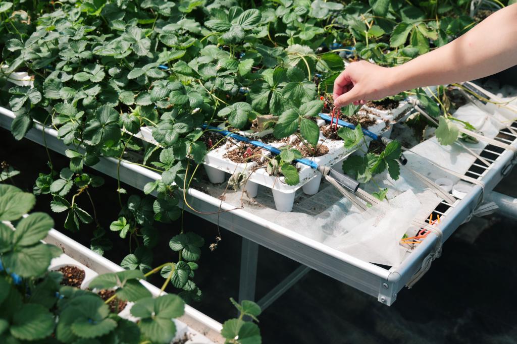 农场入口处的一体化水肥机集成了尖端的传感器技术与智能控制系统,是芦江园实现精准农业的关键所在。全自动水肥系统能够实时监测作物生长环境中的各项关键指标,包括光照、温度、湿度以及土壤水分含量等。水肥机可以定时定量浇水施肥,调整基质的酸碱度和营养物质,控制作物生长。