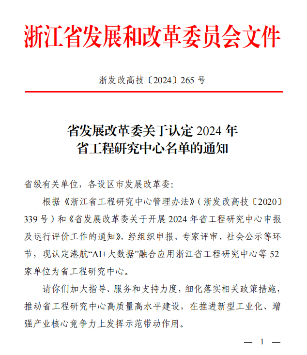 10月21日,浙江省发展和改革委员会发布了《关于认定2024年省工程研究中心名单的通知》,由公司ladbrokes立博牵头、信息科学与工程公司共同参与申报的港城数据与智能技术浙江省工程研究中心获认定批复。